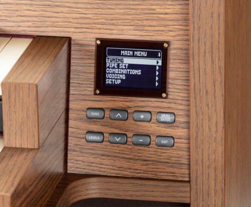 The Ensign 35-SV is an ideal instrument for home and for smaller churches and halls, having a traditional cabinet style with locking fall. Using our Physis Plus modelling technology, the Ensign 35-SV has an English voice list of 35 speaking tabs and is available in Dark and Light oak simulated wood finishes. Up to 4 channels of external amplification can also be added.