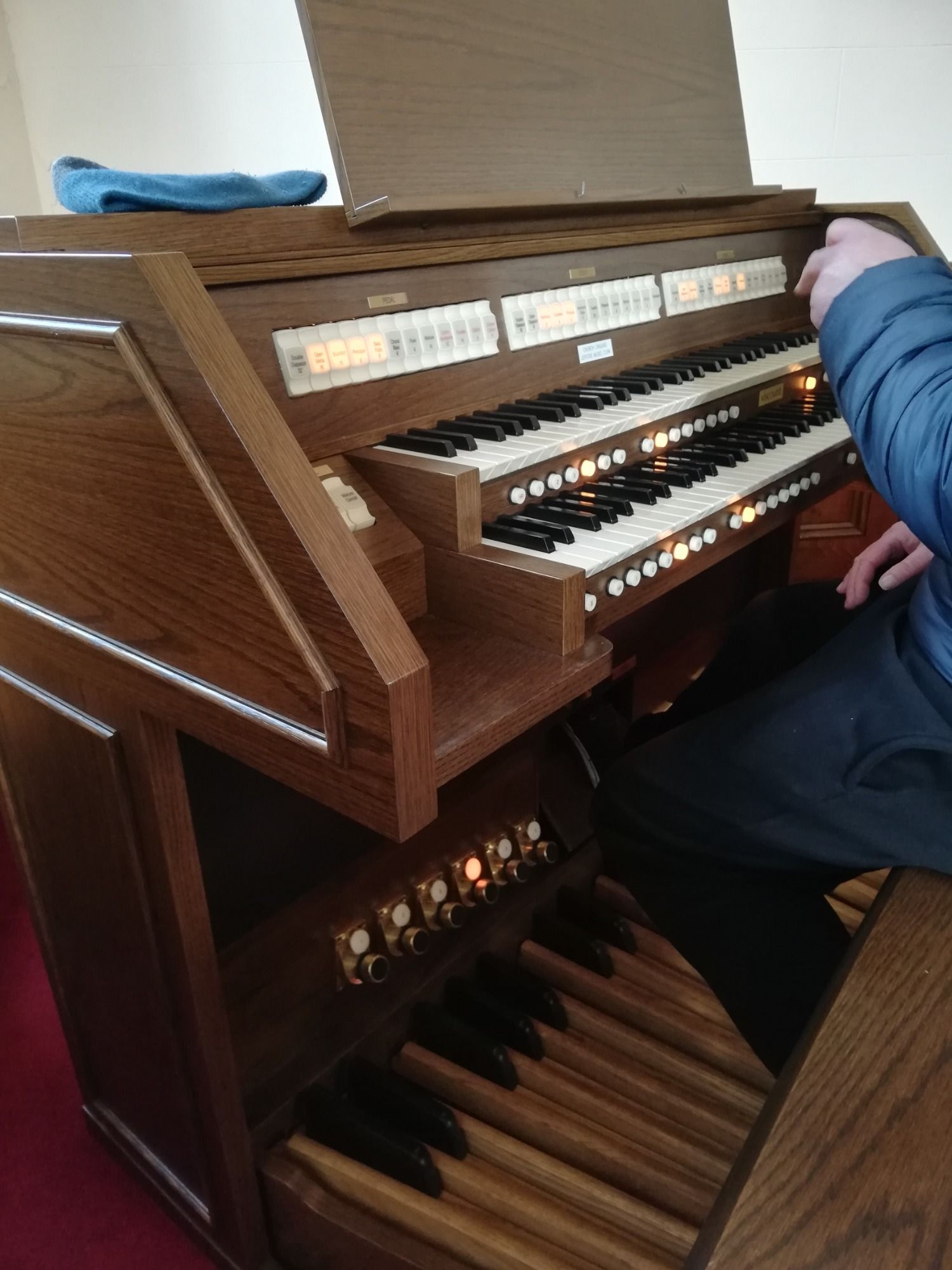 Jordanstown Looking very Delighted with His New Viscount Church Organ