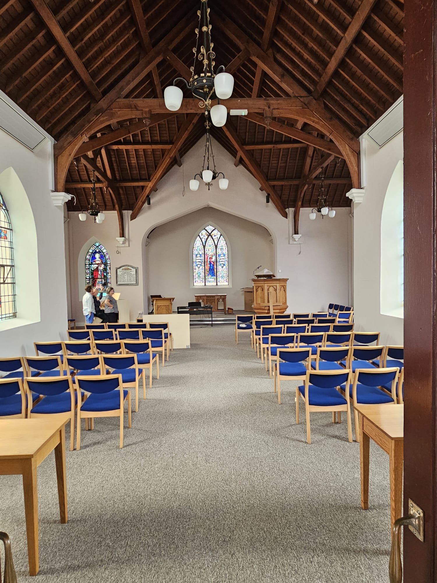 Carrick Parish Organist Ann Gibson getting an overview of layout